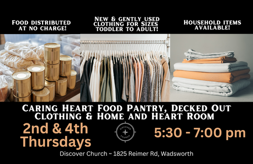 The 2nd & 4th Thursday evenings from 5:30 - 7:00 pm offer the opportunity to pick out whatever clothing needs you may have currently. Gently Used/New clothing is available from toddler to adult. For more information e-mail: deckedout@discoverchurch.life